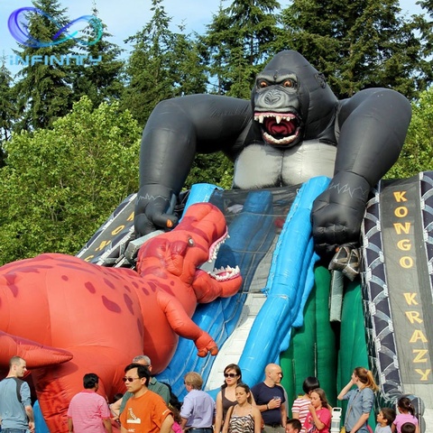 クレイジーインフレータブルドライスライドキングコンT-レックスインフレータブル恐竜ファイティングコンゴスライドKrazyトリプルレーンスライド